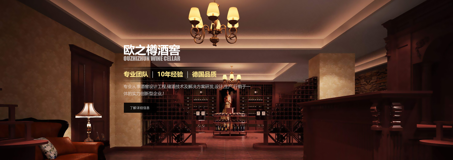 歐之樽酒窖專業(yè)的設(shè)計(jì)團(tuán)隊(duì),通過學(xué)習(xí)歐美成功酒窖的經(jīng)驗(yàn)與國(guó)內(nèi)市場(chǎng)相結(jié)合,使得我們的設(shè)計(jì)充滿著歐美氣息的中國(guó)風(fēng)。能讓你在緊張的城市氛圍中找到在大自然 中享受美酒的感覺。歐美進(jìn)口的全自動(dòng)控溫控濕系統(tǒng)既穩(wěn)定又方便,